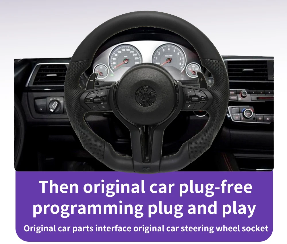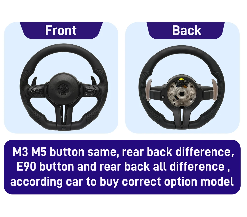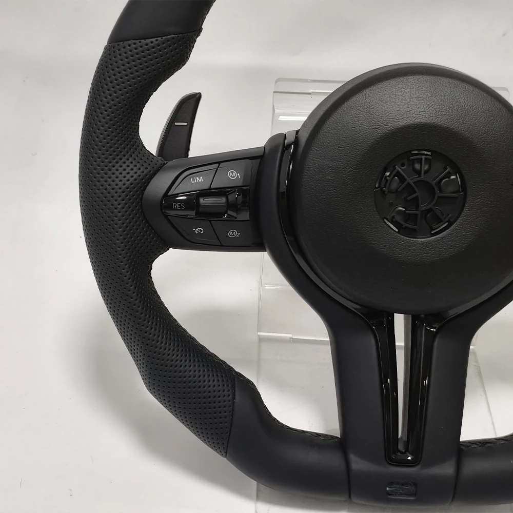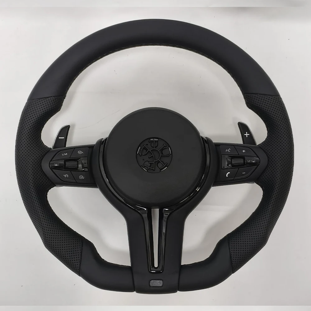 Volante em couro da Série M para BMW M3 M5 F20 F22 F23 F30 F33 F34 X1 F48 X5 F15 X3 F25 F80 E90 E70 E84 com borboletas no volante