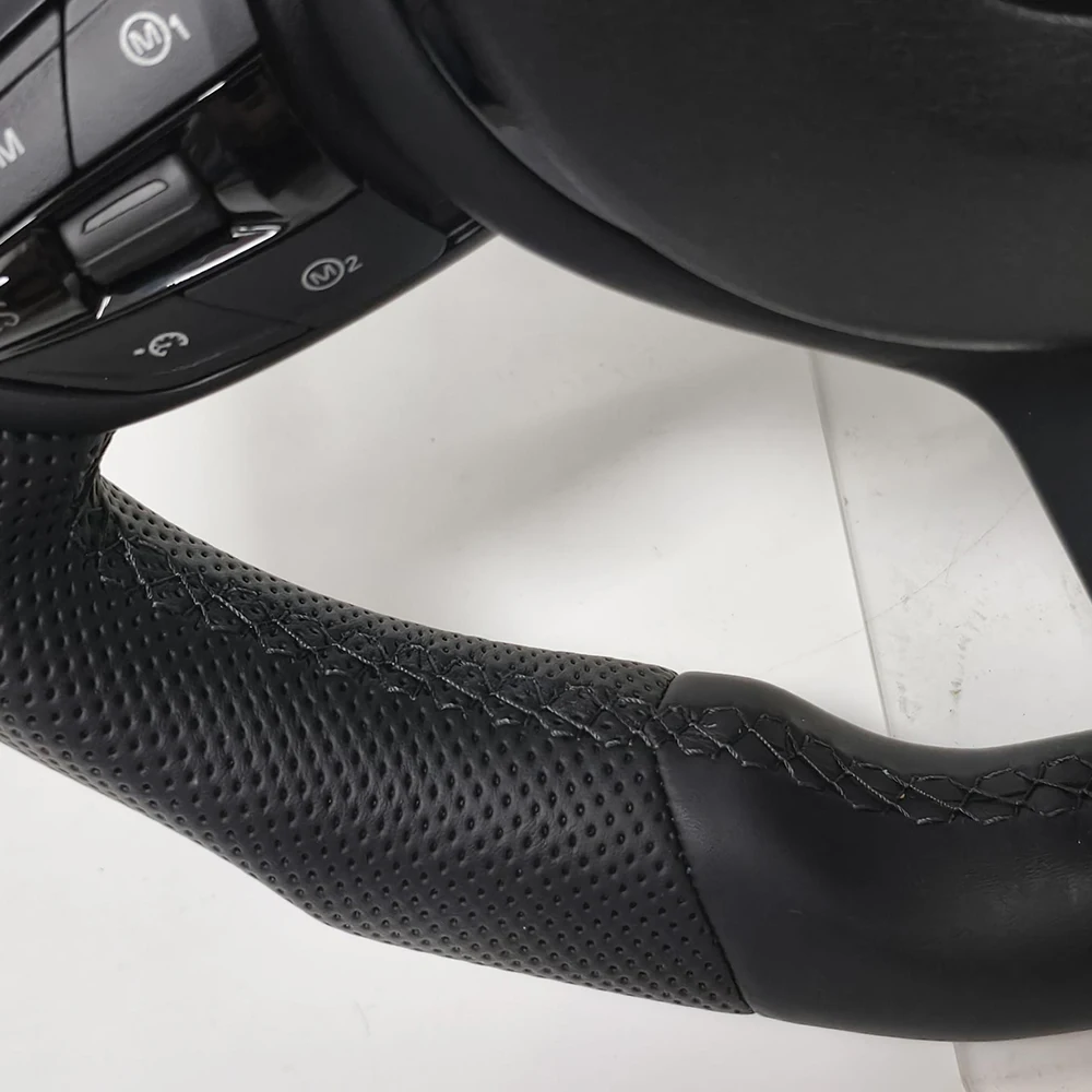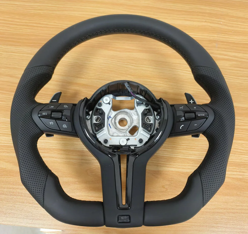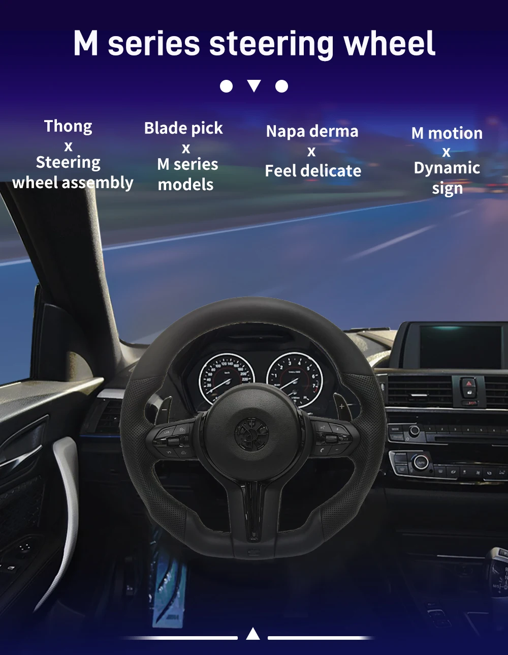 Volante em couro da Série M para BMW M3 M5 F20 F22 F23 F30 F33 F34 X1 F48 X5 F15 X3 F25 F80 E90 E70 E84 com borboletas no volante